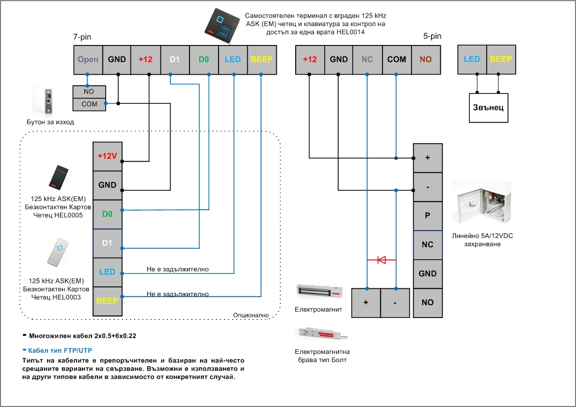 Има 26 bit Wiegand- вход за свързване на допълнителен безконтактен четец за двустранен контрол на достъп